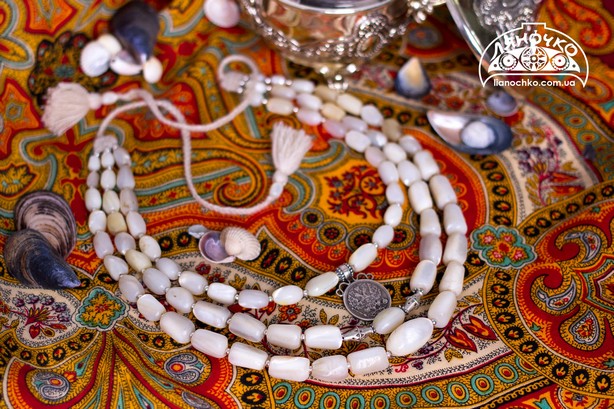 Оскільки мушлі привозили із далеких заморських земель, не менш коштовними були намиста із перлів — баламути. Дівчата надягали їх на весілля. Ці прикраси були настільки цінними, що не маючи змогу придбати, дівчата навіть брали їх у борг на час весільного дійства.
